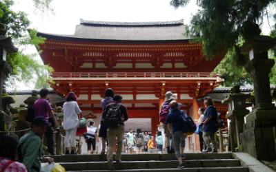 世界遺産のひとつとして登録されている春日大社。建築史の教科書には、神明造の伊勢神宮、大社造の出雲大社、住吉造の住吉大社に続いて出てくる、春日造の神社になります。来年、20年に一度の式年造替(「造替」とは「社殿を造り替える」という意味。神さまがお引越しされることを「遷宮」といいますが、春日大社では本殿の位置は変えずに建て替え、あるいは修復を行うため「造替」と言うそうです。)が行われるというタイミングで、普段は立ち入れない場所にも入ることができました。