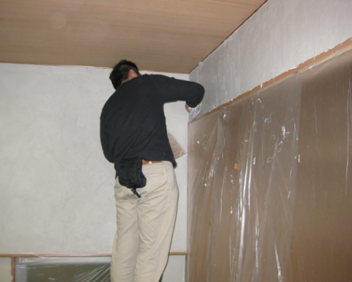 丸1日かかって一部屋塗り終えました。あとで、いろいろ試算したんですが、ほんとうはプロに頼んだほうが仕上りといい、コストといい割がよかったのかもしれません。ただ、自分たちで創意工夫しながら、ワイワイいいながら塗っていけたことはいい思い出になりました。これからの時代、”住まい”も自分たちで手入れしながら住み繋いでいくことが増えてくるのだと思います。
