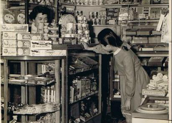 茶舗・いり江豊香園は、昭和22年、福岡・天神(旧因幡町商店街北通り)に入江央(なかば)(曽祖父)が創業しました。店舗はわずか15坪ほど。生活用品も食料品もまだ不足していた時代にあって、当時はなかなか手に入らなかった砂糖や菓子類、ロウソク、線香と言った雑貨類を販売していました。当時、菓子店は大変珍しく、明治、森永、グリコなどのメーカーの商品や、外国からのチョコレートやチューインガムなども店頭に並んでいました。ケーキも販売していたので、クリスマスともなると珍しいケーキを求め、我先にと家路を急ぐサラリーマンでいっぱいでした。