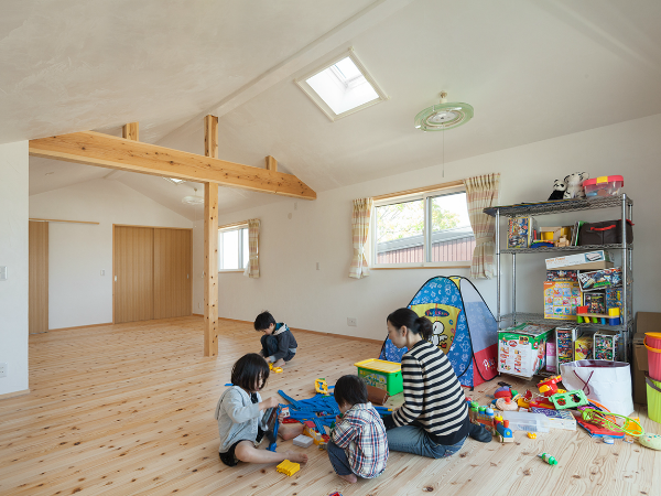 まずは、無垢材、特に構造材にしっかりとした材料を使おうということで、こだわりの製材工場に供給をお願いすることにしました。その製材所は、天然乾燥材をあつかう、うきは市にある岩佐製材所さんです。S様にも足を運んでいただき、直接目で見て、こだわりの部分の説明を聞いていただきました。
