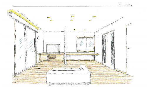 最初は、押し入れをクローゼットに改装したいという相談だったと記憶しています。何度かやりとりをしていくうちにせっかくお金をかけるなら、ということで、和室2間と縁側を含めたところで、プランを提案いたしました。上の図面の左側が改装前の間取りですが、和室2間、縁側の部分にタンスや洋服掛があって、南側の一番居心地のいい場所が、納戸のようになっていました。提案では、和室2間と縁側をリビングとちょっと大きめのクローゼットにしています。