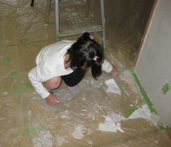 丸1日かかって一部屋塗り終えました。あとで、いろいろ試算したんですが、ほんとうはプロに頼んだほうが仕上りといい、コストといい割がよかったのかもしれません。ただ、自分たちで創意工夫しながら、ワイワイいいながら塗っていけたことはいい思い出になりました。これからの時代、”住まい”も自分たちで手入れしながら住み繋いでいくことが増えてくるのだと思います。