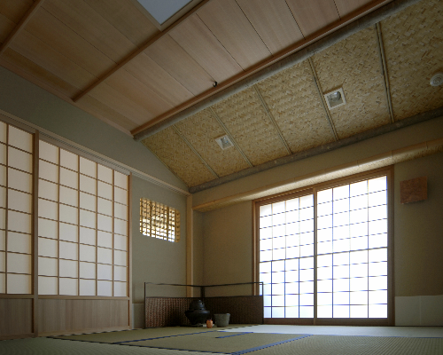 茶道は、道具を置く位置や足の運びが畳の目を目安にしています。通常、マンションの和室の場合畳のサイズがかなり小さいんですよね。そこで、和室6帖あったところを4畳半にし、炉を設置するために床を20cmほどあげました。炉を置くところ以外は床下収納ができるようなっています。余ったスペースには置き水屋が設置できるように物入を設けました。その他、畳の目の方向や釘の位置など流派によっても違いがあることなどこの物件を通してかなり勉強になりました。