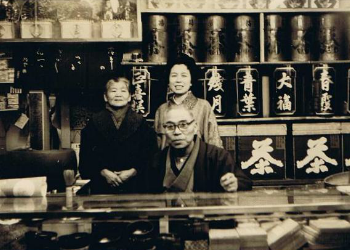 創業間もなく、事業拡大の為に母の実家であった八女からをお茶仕入れて販売する事にしました。これが茶舗いり江豊香園の始まりです。上級茶、並茶が所狭しと並べられ、白折れや玄米茶も庶民、会社の飲み物には欠かせぬ食料品でした。 お店には茶缶がずらっと並び、当時はお茶の粉を篩って袋詰めしていました。
