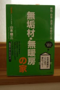 その本は、上の写真の本です。タイトルにもあるように、無垢材をつかい、しっかりと断熱をほどこすことで、暖房のいらない家ができるといいます。それに、私自身の命題でもあった、”すまい”の結露を防ぐために、水蒸気を調節するさまざまな工夫が書かれてありました。