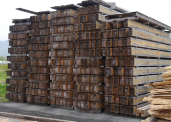 木材は、山から切り出したままだと、水分が多く含まれていて、そのまま使用すると割れやそりなどの原因になってします。その水分を減らすため(含水率を低くおさえる為に)長い期間、天日干しにして自然乾燥させます。現在の乾燥方法の主流は、人工乾燥(重油などで強制的に乾燥させる方法)なのですが、その乾燥方法より、自然乾燥の方が、木材の色合いだったり、香りが違ってくるんですよね。今回は、柱の大きさも通常105mm角のものではなく、すべて120mm角のもので製材していただきました。