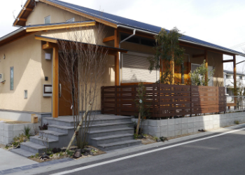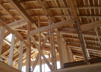 まずは、無垢材、特に構造材にしっかりとした材料を使おうということで、こだわりの製材工場に供給をお願いすることにしました。その製材所は、天然乾燥材をあつかう、うきは市にある岩佐製材所さんです。S様にも足を運んでいただき、直接目で見て、こだわりの部分の説明を聞いていただきました。