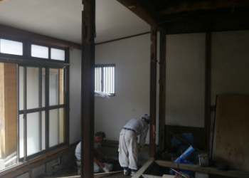 解体時の内部。縁側の部分が増築されたことがわかります。