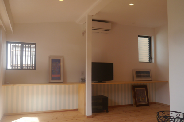 リビングを望む。奥様が絵がお好きとのことで、数点の絵画が置かれています。